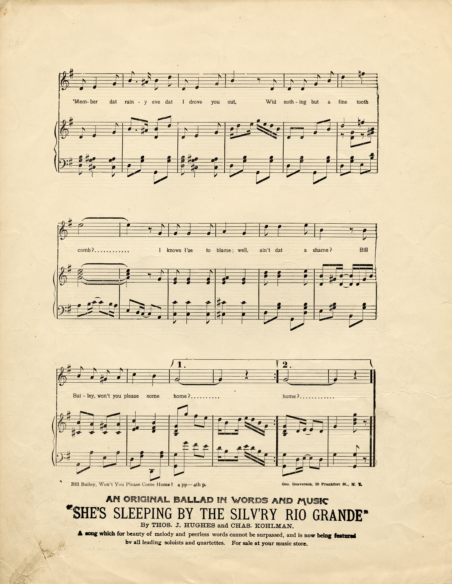 Bill bailey wont you please come home sheet music. Published by hal leonard. Bill bailey wont you please come home. Howley haviland dresser 1260 1266 broadway. Bill bailey wont you please come home ssa 140 by hughie cannon.