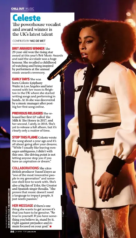Celeste singer uk. In late 2019 she won both a brit award and a bbc music award and was named the number one. Including latest news live dates store videos and more. For those who arent familiar with celeste the singer won the brits critics choice award earlier this year celebrated by a performance of strange at the awards as well as bbcs sound of 2020. Since 2017 celeste has released two extended plays and has supported michael kiwanuka on tour.