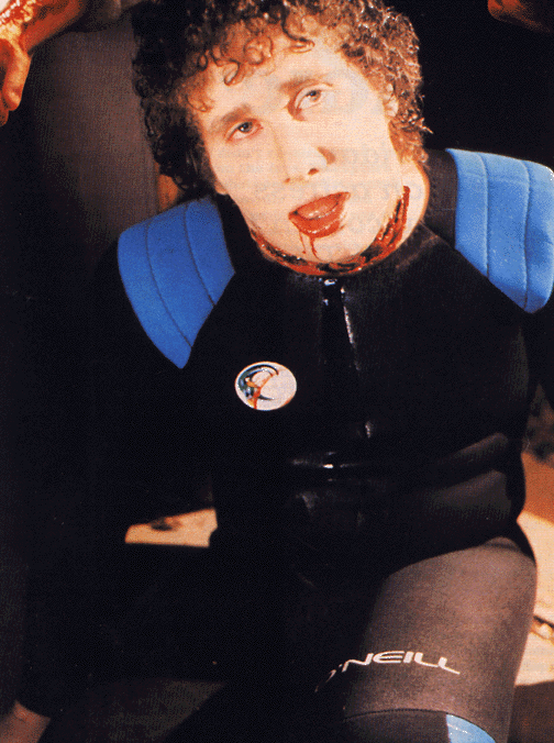 Additional blood flow was cut from the shot of jason slicing scotts throat.