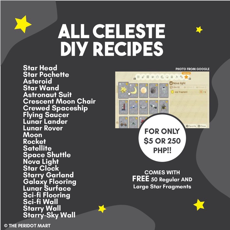 Special materials for celestes diy recipes star fragments.