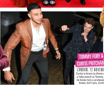 Tommy fury in a suit. He is a half brother of heavyweight world champion tyson fury early life. And tyson wast spotted greeting the couple in his jazzy suit trousers. In june 2019 he took time off from boxing to star in the fifth series of the dating reality show love island. Tommy fury has admitted hes lost his six pack and says having a ripped body doesnt mean anything after girlfriend molly mae hague poked fun at his plump stomach.